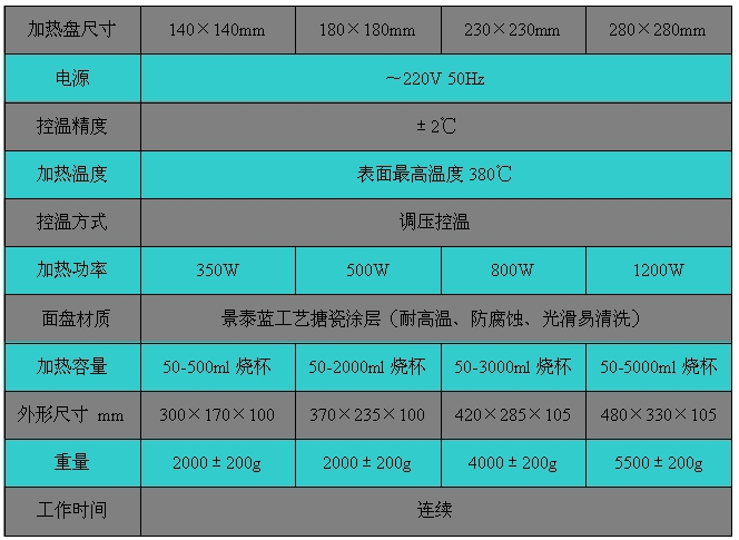 TWJR-B-C型 調溫加熱板的技術參數