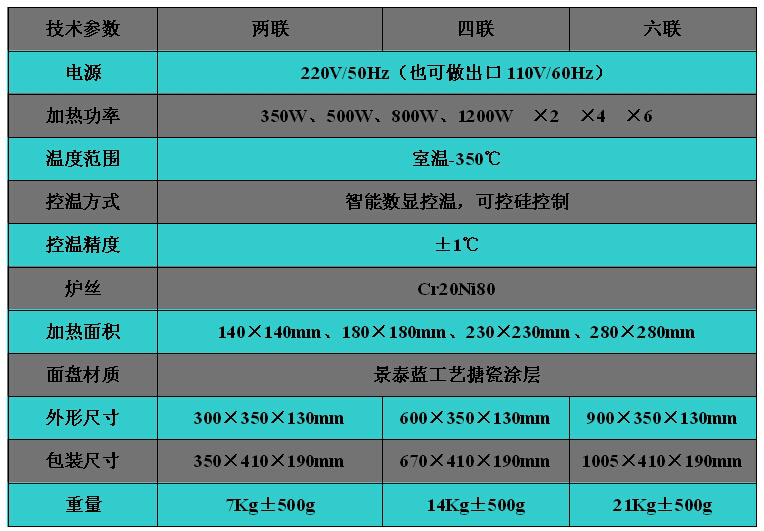 ZNJR-DL-B型 多聯恒溫電熱板的技術參數: