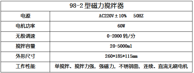 85-2C、HJ型系列恒溫磁力攪拌器采用直流穩(wěn)速電機,無噪聲、無振動、無極調(diào)速,主要提供強粘度常溶液的攪拌,同時具有恒溫加熱裝置,是廣泛用于各大院校、環(huán)保、衛(wèi)生、防疫、石油、冶金、化工、自來水、醫(yī)療等單位的實驗工具。