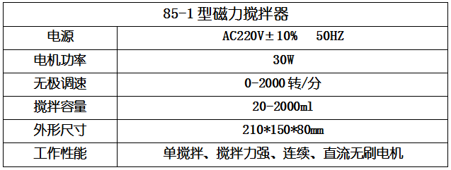 85-2C、HJ型系列恒溫磁力攪拌器采用直流穩(wěn)速電機,無噪聲、無振動、無極調速,主要提供強粘度常溶液的攪拌,同時具有恒溫加熱裝置,是廣泛用于各大院校、環(huán)保、衛(wèi)生、防疫、石油、冶金、化工、自來水、醫(yī)療等單位的實驗工具。